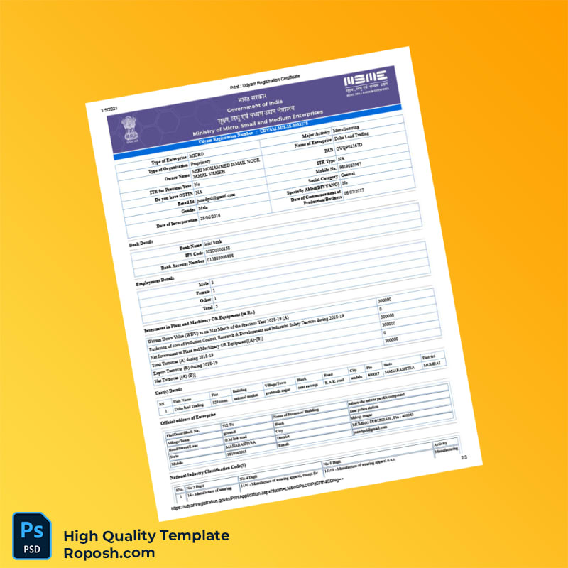 - Includes all required fonts and formatting consistent with official MSME certificate standards, reducing formatting errors.