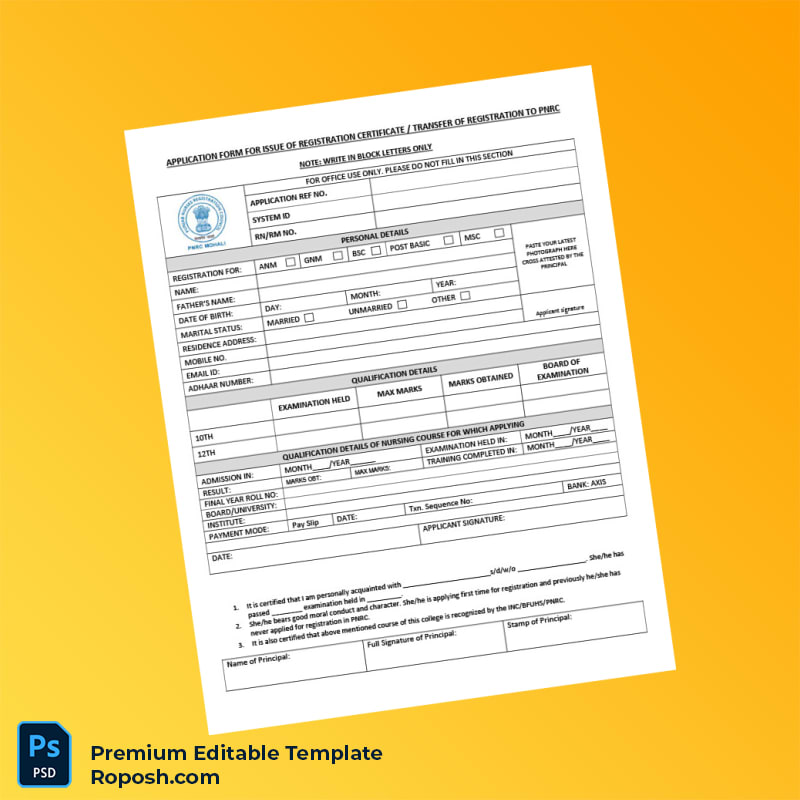 Streamline Your Professional Credentials with the India Punjab Nurses Registration Council Registration Form Editable Word & PDF Template
