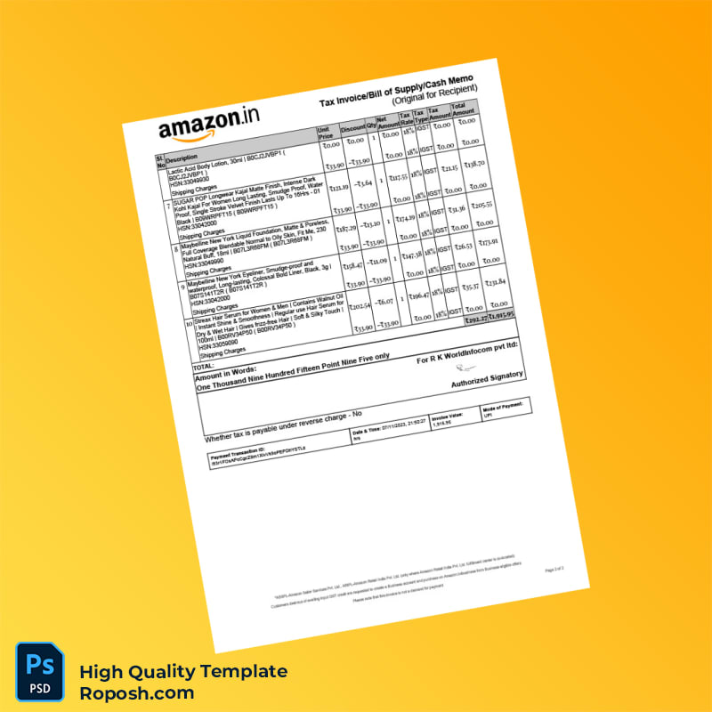Don’t let invoicing become a roadblock in your business workflow. Download the India R K World Infocom Pvt Ltd Tax Invoice Template now and enjoy the confidence that comes with a fully editable, tax-compliant, and visually professional invoice. Make your billing process smoother and faster—get your editable printable invoice template today!
