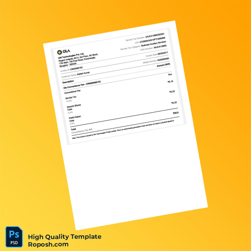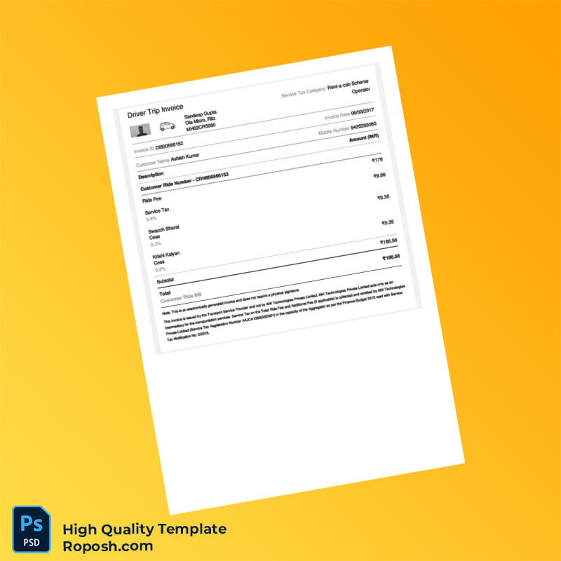 India Ridesharing Service Invoice Template in Word and PDF Formats
