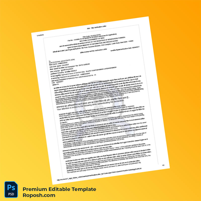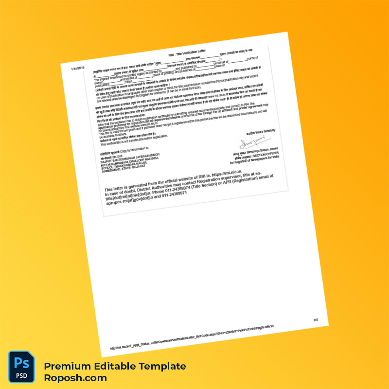 Streamline Your Business Registration with the India RNI Registration Certificate Editable Word & PDF Template