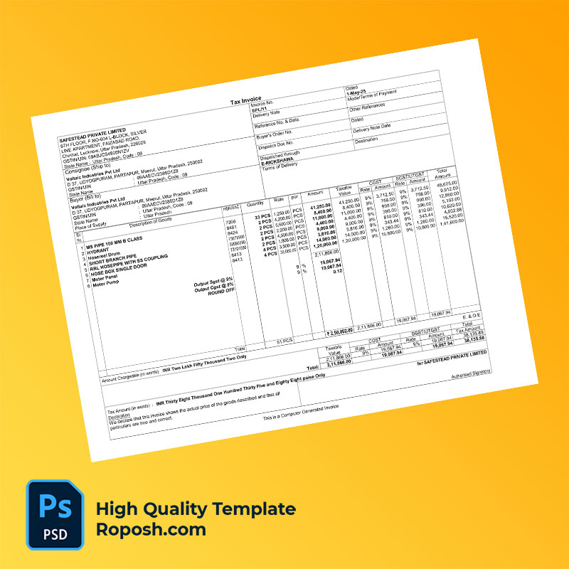 India Safestead Private Limited Editable Construction Bill Template in Word and PDF formats
