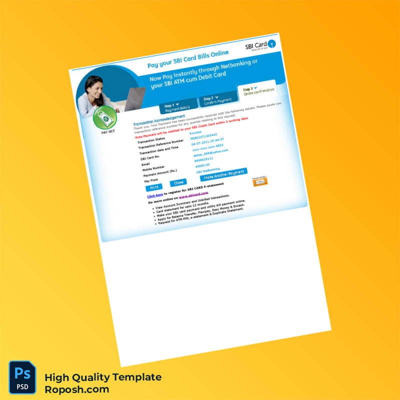 India SBI Editable Payment Acknowledgement Template in Word and PDF formats