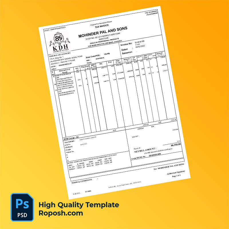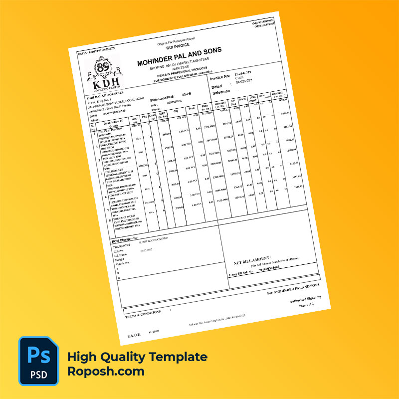 India Shree Balaji Agencies Editable Tax Invoice Template in Word and PDF formats