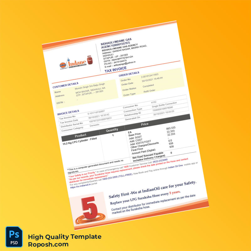 India Sidhauli Indane Gas Agency Tax Invoice Template: Simplify Your Billing Process