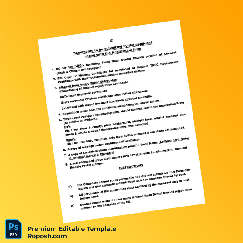 Specifically tailored for the India Tamil Nadu Dental Council, this template meets local regulatory standards, providing a hassle-free way to comply with council requirements and maintain professional credentials without interruption.
