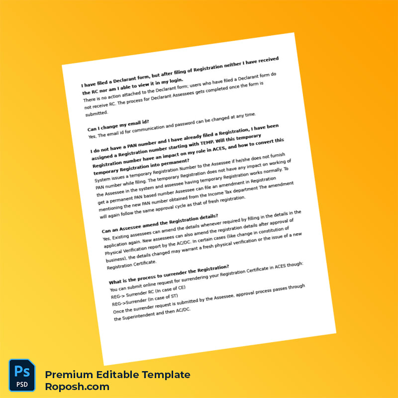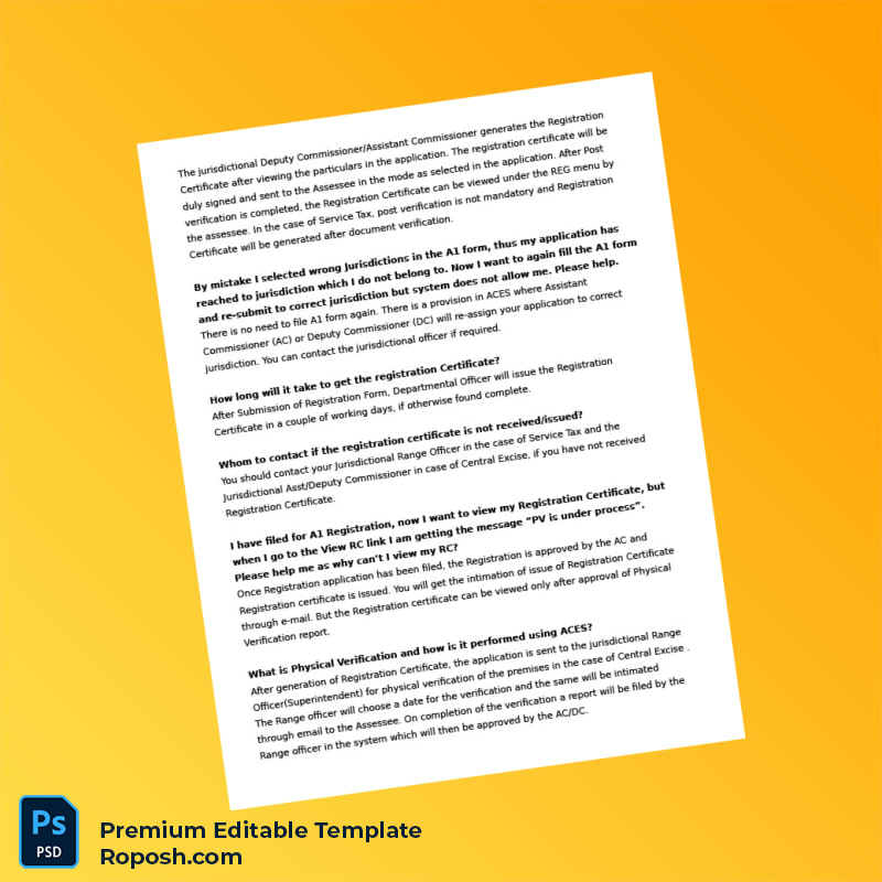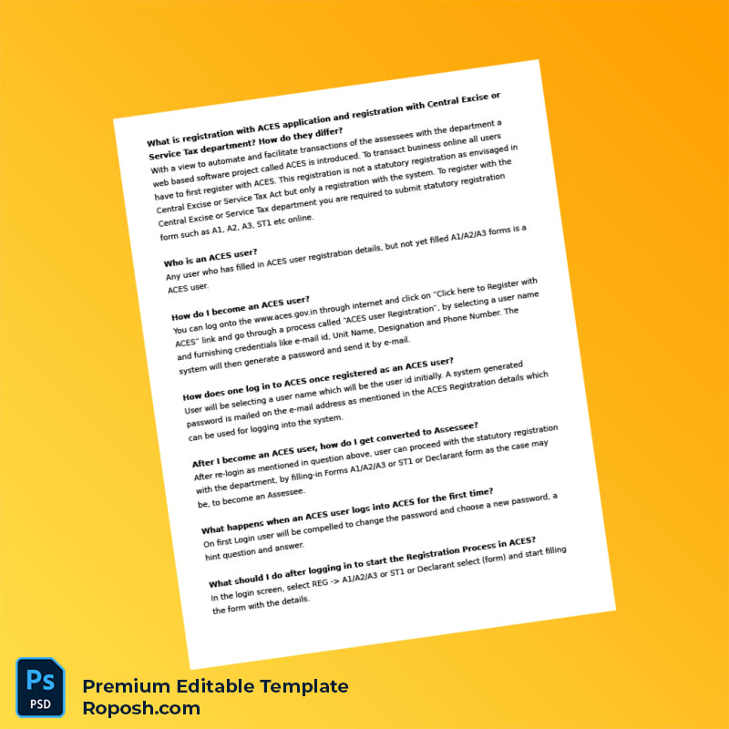 Don’t let outdated or misplaced registration documents slow down your operations. Purchase the India Tax Authority Editable ACES Registration Certificate Editable Word & PDF Template now and enjoy a seamless, professional, and compliant editing experience. Enhance your administrative workflow and stay at the forefront of business readiness.