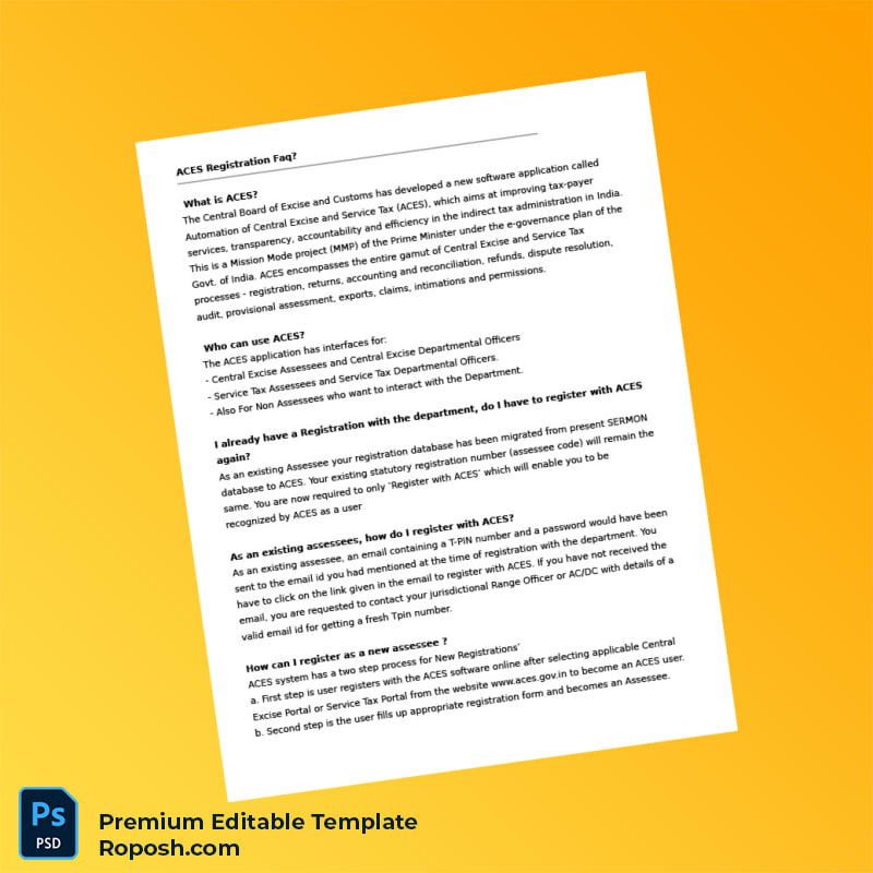 Streamline Your Business Registration with the India Tax Authority Editable ACES Registration Certificate