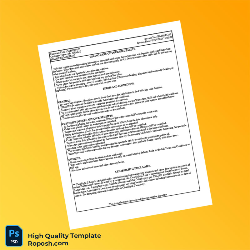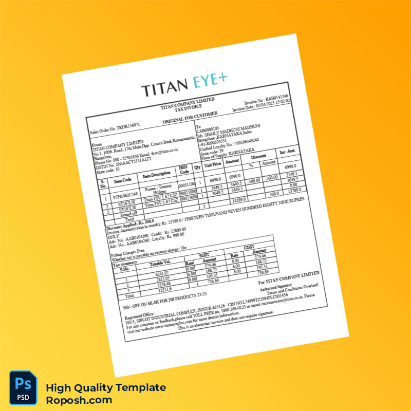 India Titan Company Limited Tax Invoice Template: Professional, Editable, and Ready to Use