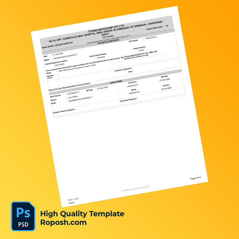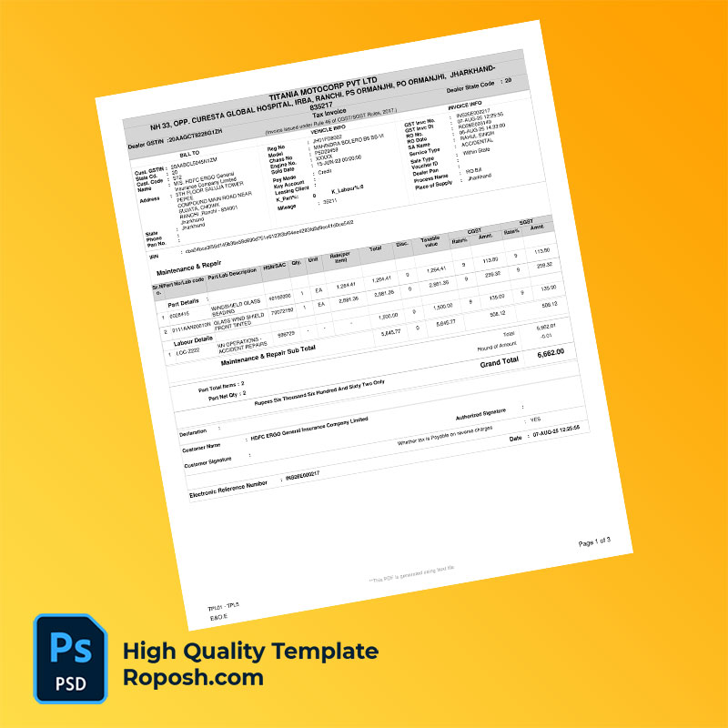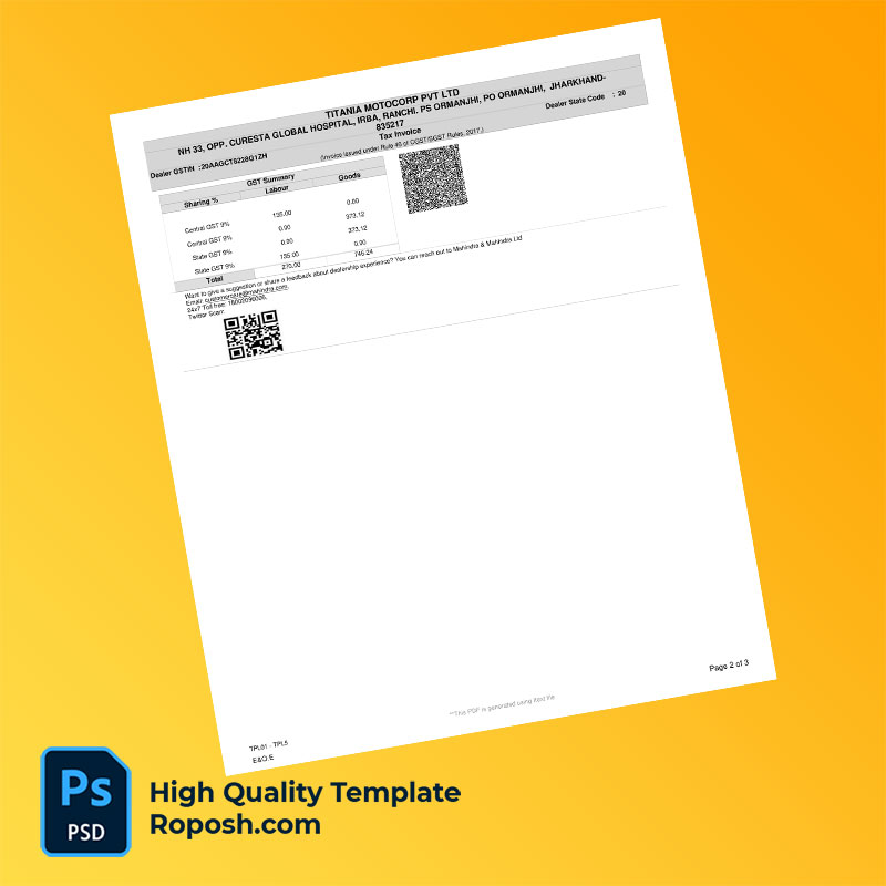 India Titania Motocorp Pvt Ltd Editable Tax Invoice Template in Word and PDF formats
