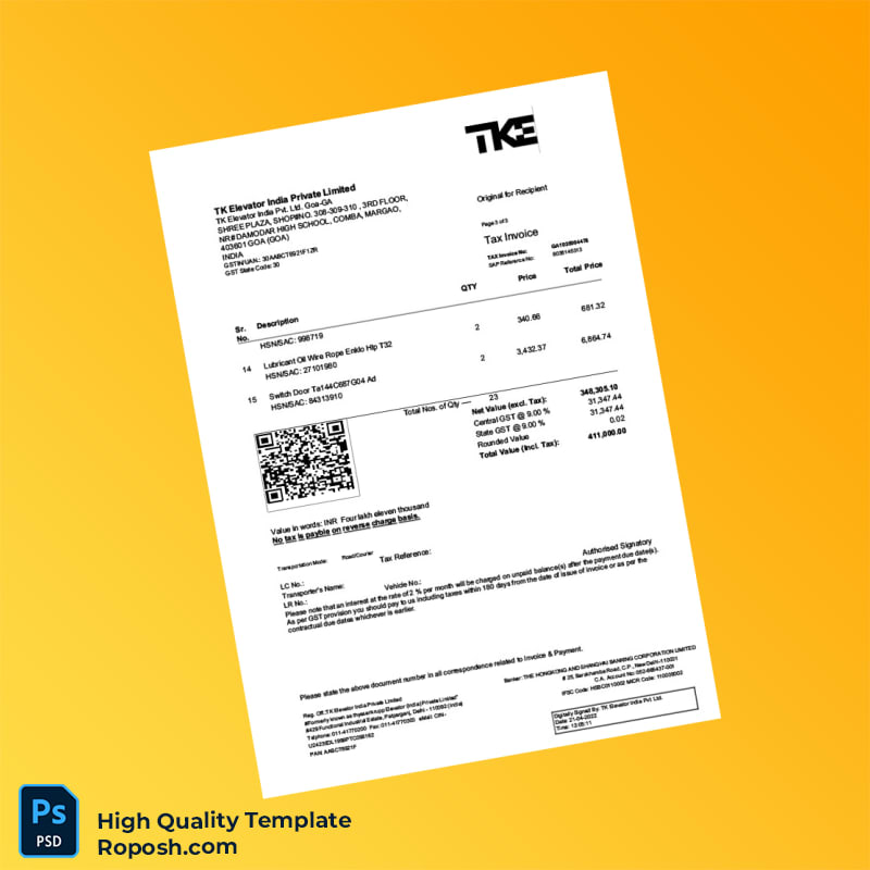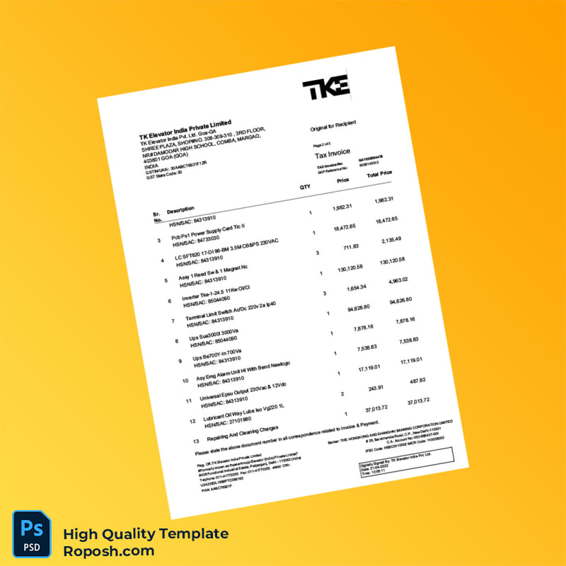 India TK Elevator India Private Limited Tax Invoice Template: Simplify Your Billing Process