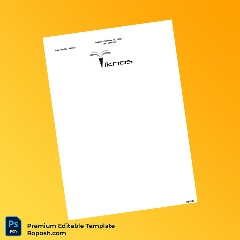 India Trade Marks Registry Trademark Registration Certificate Editable Word & PDF Template 2 page