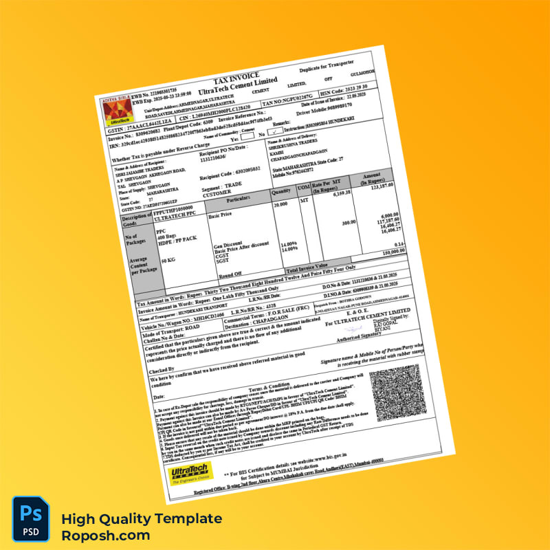India UltraTech Cement Limited Tax Invoice Template – Editable and Ready to Use
