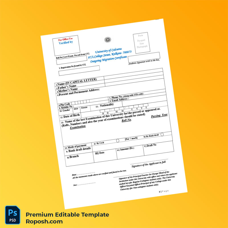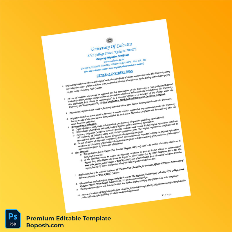 Elevate your document management experience today by choosing the India University of Calcutta Editable Migration Certificate Editable Word & PDF Template. Prepare, edit, and print your migration certificates confidently and efficiently. Don’t let paperwork slow you down — secure your copy now for hassle-free document handling.