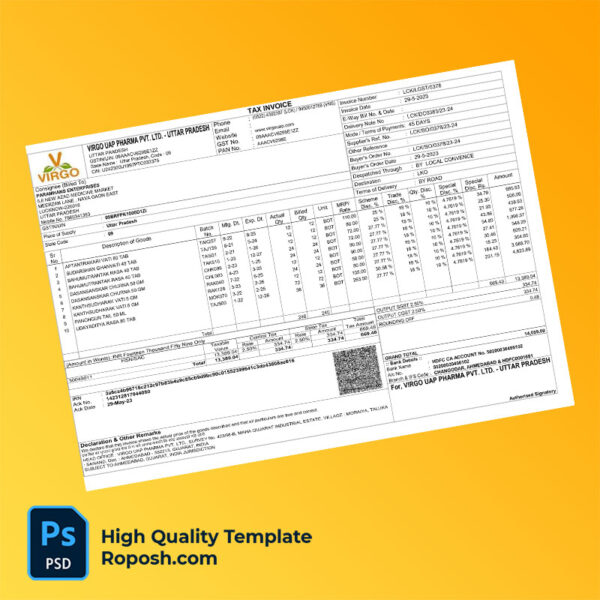 India Virgo UAP Editable GST Tax Invoice Template in Word and PDF formats
