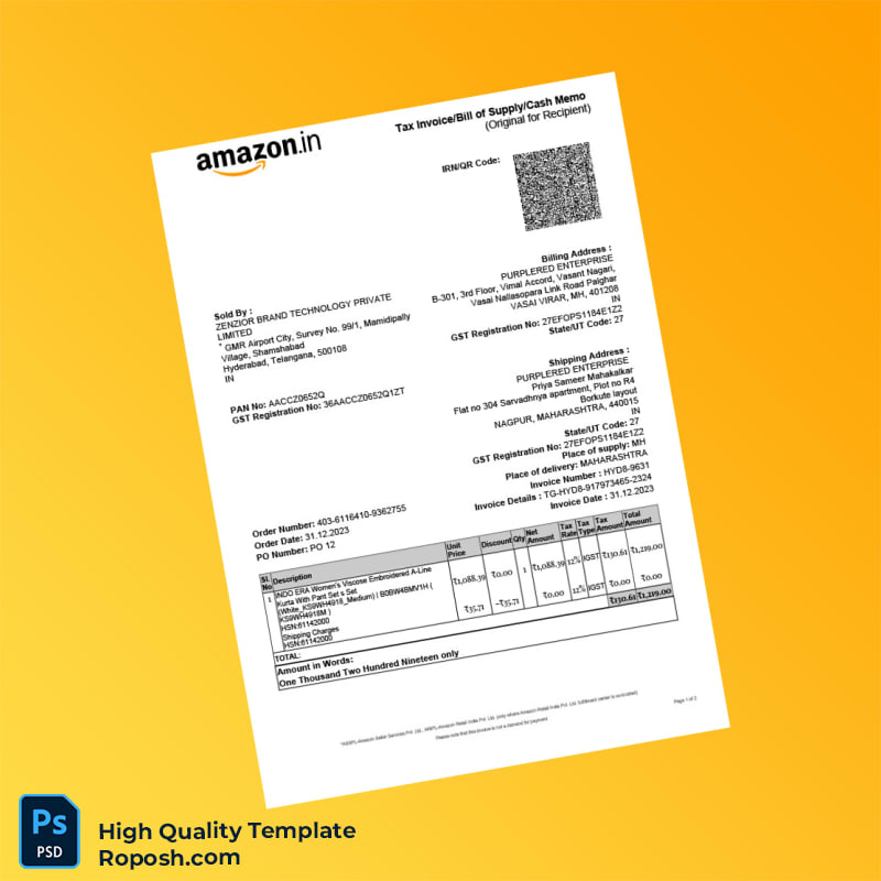 Discover the ultimate solution for creating professional tax invoices with the India ZENZIOR BRAND TECHNOLOGY PRIVATE LIMITED Tax Invoice Template, available in both Word and PDF formats. Designed for ease of use and complete customization, this editable invoice template empowers businesses and freelancers to present impeccably formatted invoices with minimal effort.