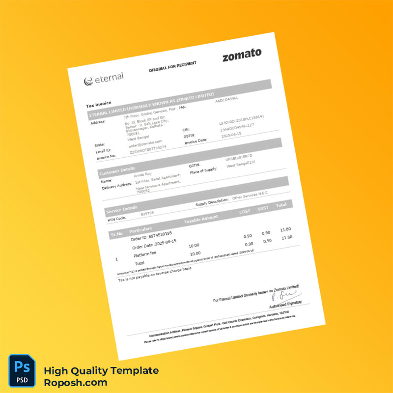 Empower your invoicing process with this India Zomato Tax Invoice Template in Word and PDF formats—designed to save you time, enhance accuracy, and ensure compliance. Make your purchase now and gain immediate access to a powerful tool that elevates your business documentation effortlessly.