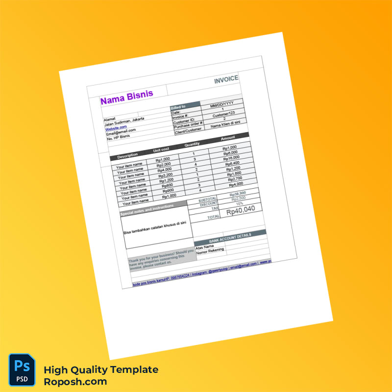 Don’t let invoice complications disrupt your workflow. Download the Indonesia Losmen Al Mukkaromah Invoice Template now and benefit from a fully editable, professionally designed document tailored to your needs. Achieve faster invoicing and a more polished client experience—click to get started!