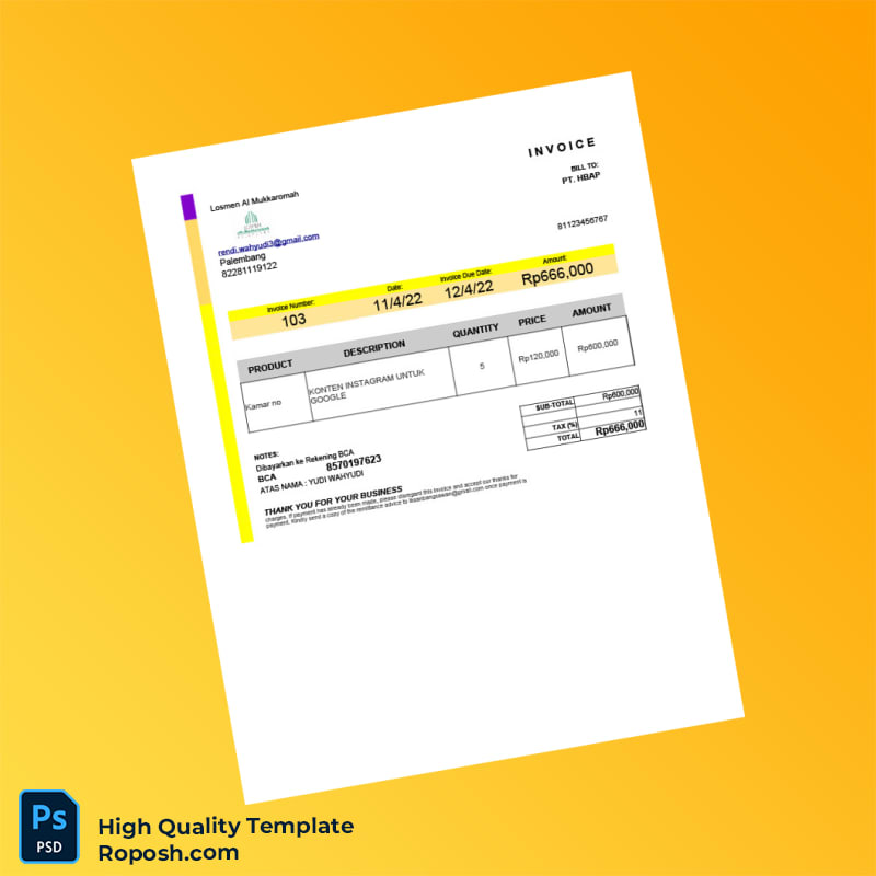 Indonesia Losmen Al Mukkaromah Invoice Template – Editable Word and PDF Format