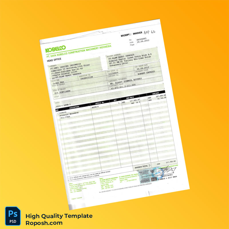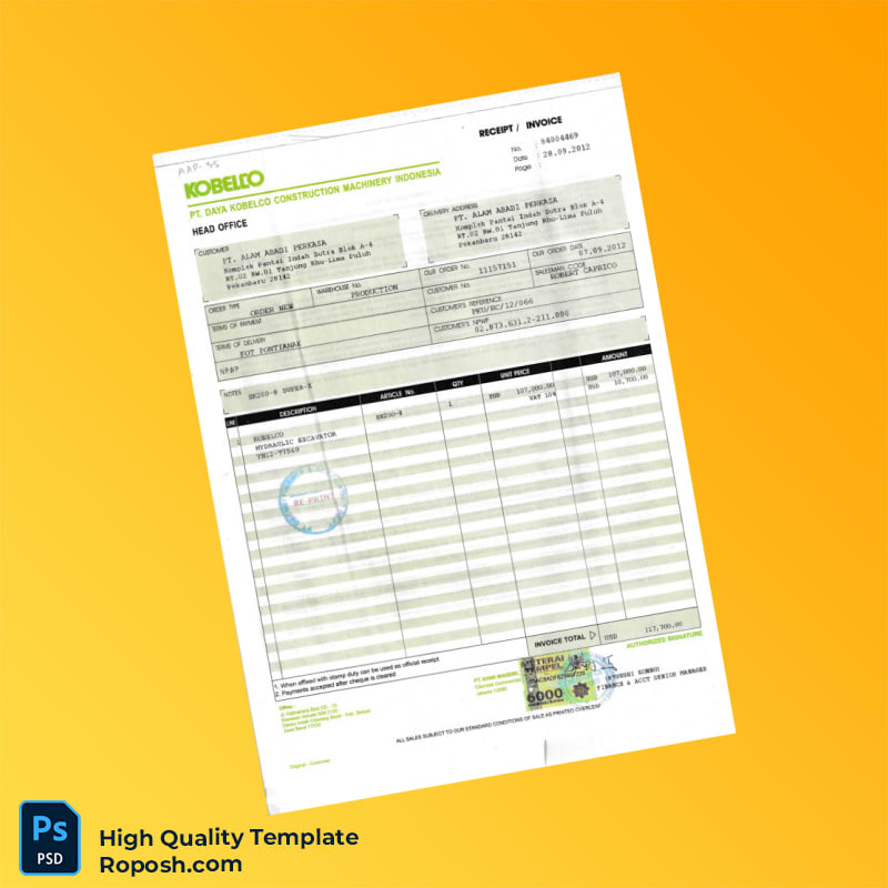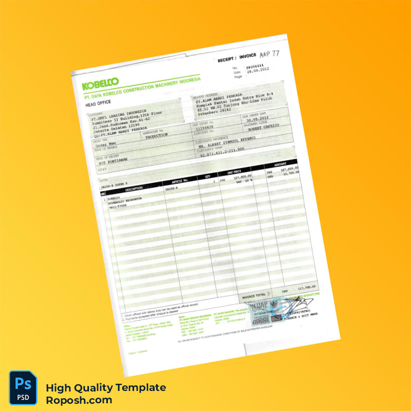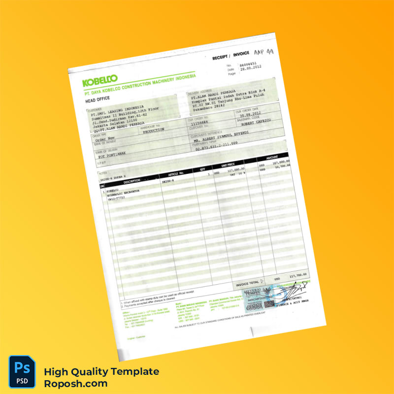 Indonesia PT Daya Kobleco Construction Machinery Indonesia Invoice Template – Editable Word and PDF Formats