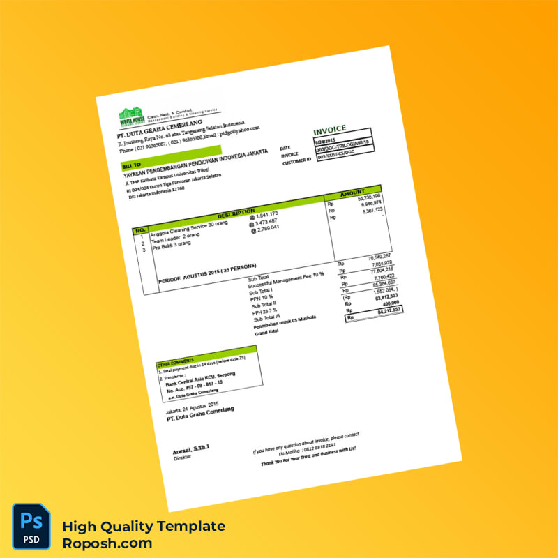 Indonesia PT Duta Graha Cemerlang Invoice Template in Word and PDF Formats