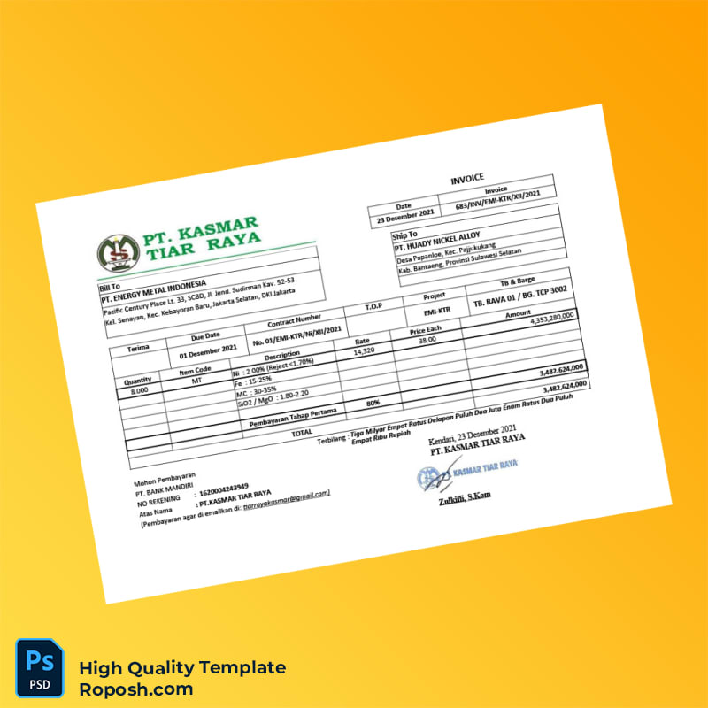 Indonesia PT Energy Metal Indonesia Invoice Template – Editable and Professional