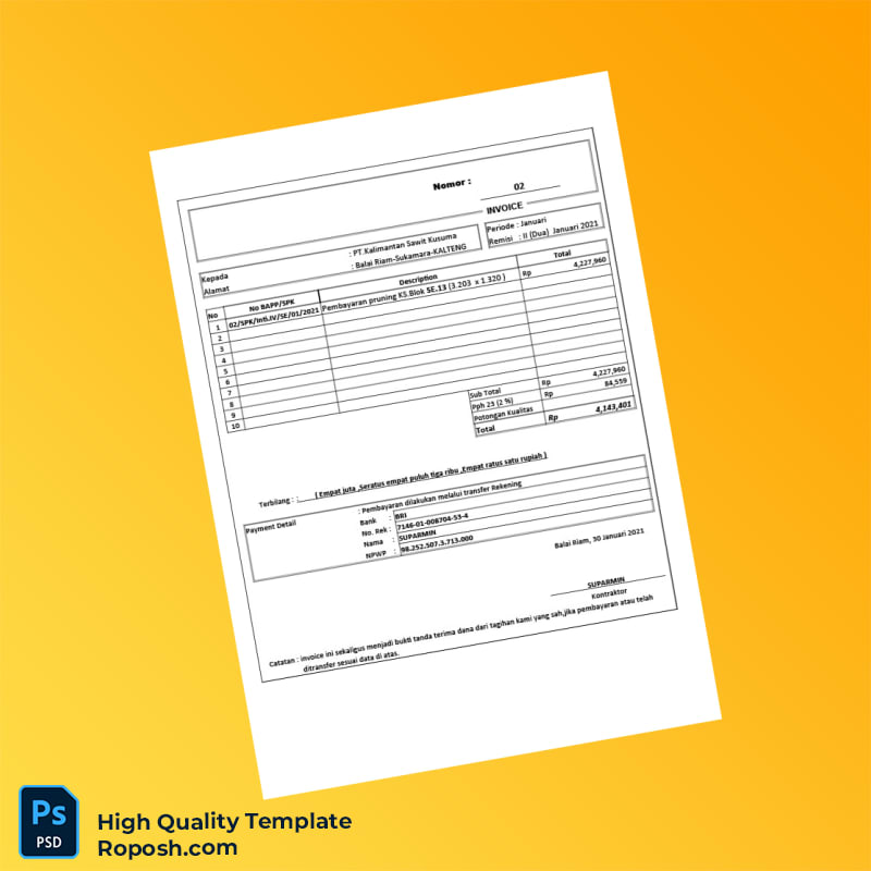 Indonesia PT Kalimantan Sawit Kusuma Invoice Template