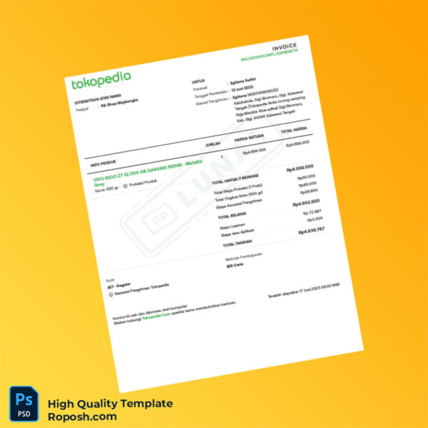 Indonesia RA Shop Invoice Template in Word and PDF Formats