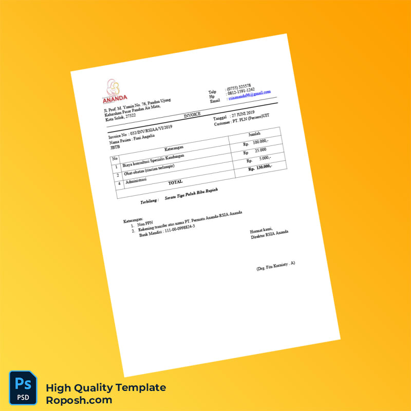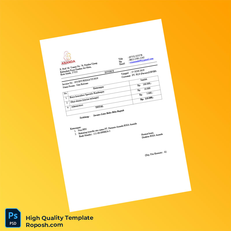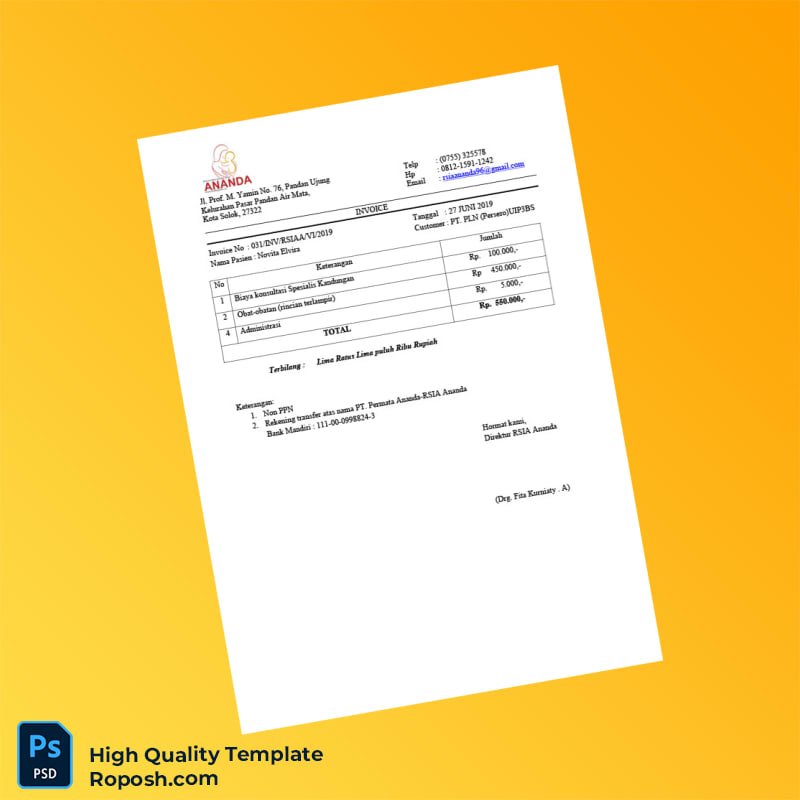 Indonesia RSIA Ananda Invoice Template in Word and PDF