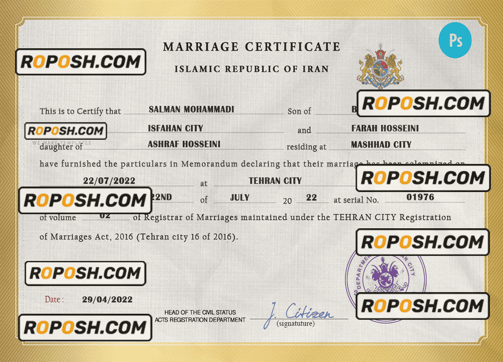 – Join our growing list of satisfied customers today by getting your hands on our blank Iran marriage paper certificates.