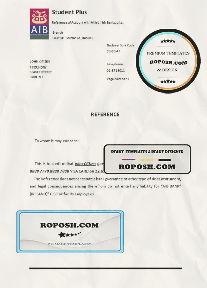 Ireland AIB bank account closure reference letter template in Word and PDF format