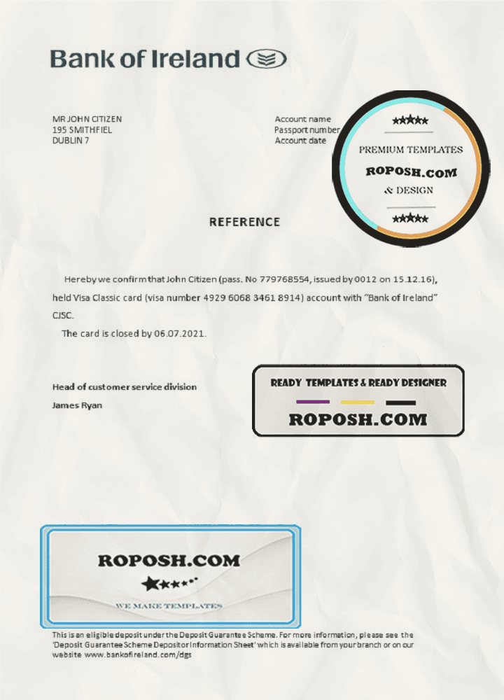 Ireland Bank of Ireland account closure reference letter template in Word and PDF format