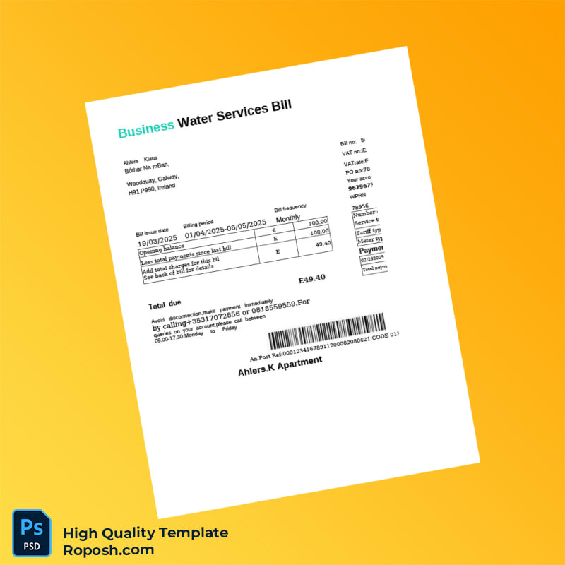 Transform Your Address Verification with Our Ireland Editable Water Bill Template