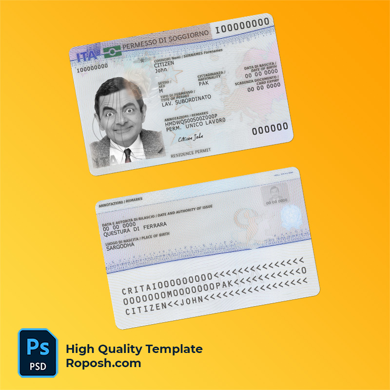 Don’t miss out on this opportunity to own a versatile and high-quality Italy Residence Permit ID Card Template PSD. Download now and start customizing!