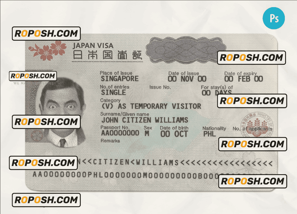 Japan tourist visa template psd. Buy Customizable Travel Visa Template with high quality and enjoy its unique features such as easy to customize, Layer based, fonts included sample. you can edit this template and put any name, address, license number, Id number, birth date, height, weight, expire date, change photos etc. This Photoshop template is a layer based psd file and it’s easy to Editing.To modify this photoshop template file you will need a Photo editing software such as Adobe Photoshop No need to be expert on editing software like adobe Photoshop. However, You just have to basic knowledge on adobe photoshop, to edit this template. Never used low quality template. Your account may be suspended. Also, if you’re looking for an editable SSN template, Roposh is by your side so you can get it easily and even for free.