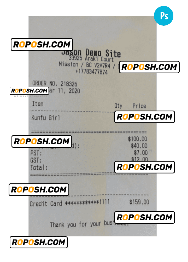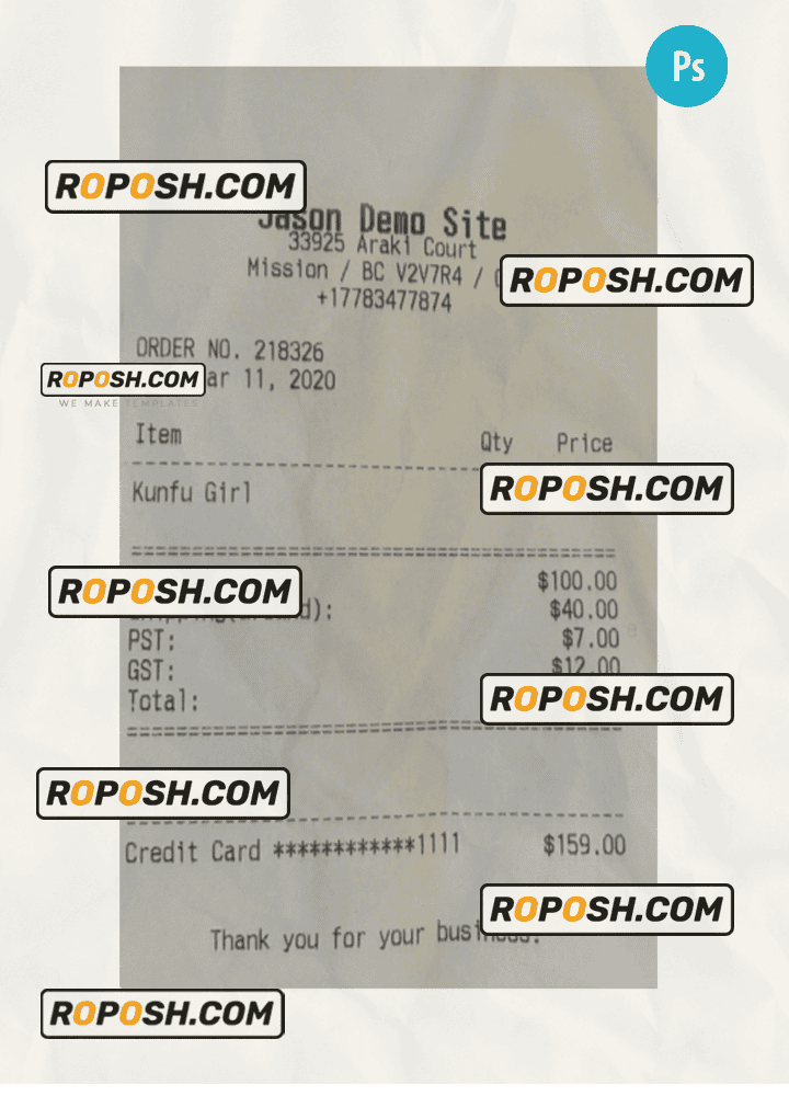 Features Editable JASON DEMO SITE Receipt PSD Template :