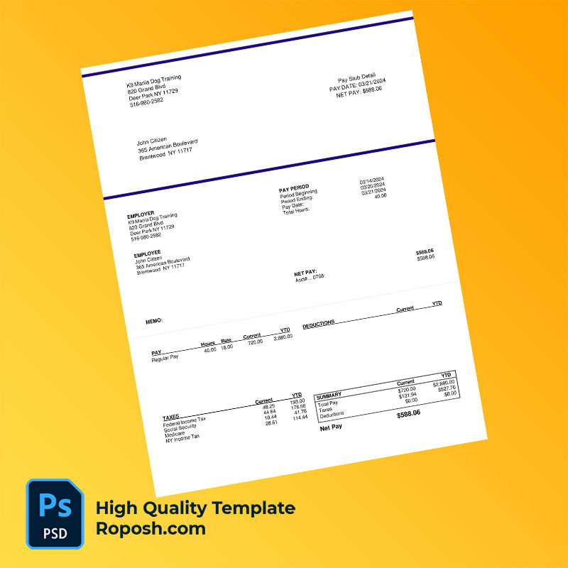 K9 Mania Dog Training pay stub word and pdf template