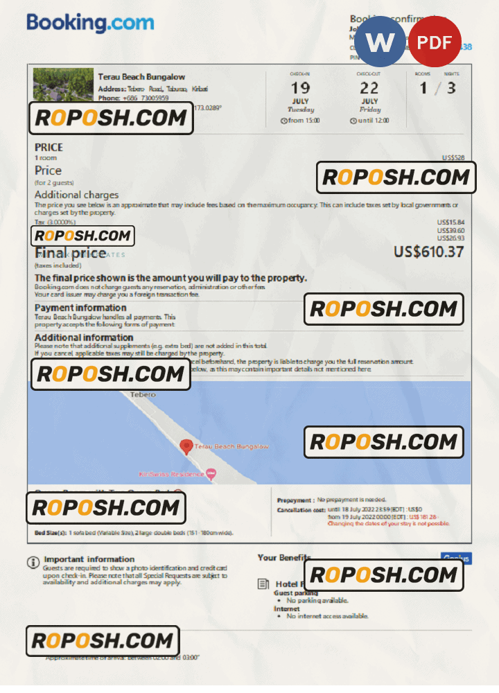 With its user-friendly design and flexible editing capabilities, this editable Kiribati hotel booking confirmation hotel, room, house, and Airbnb reservation proof is the perfect choice for anyone looking to create a professional-quality editable hotel accommodation reception. So why wait?