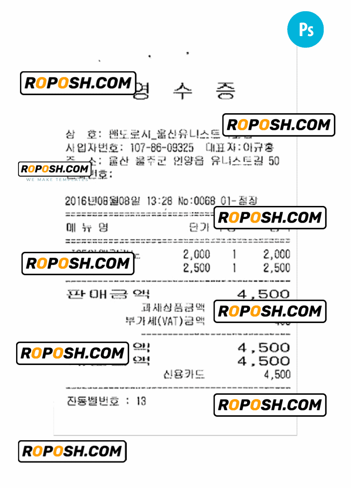 Features Editable KOREAN SHOP Receipt PSD Template :