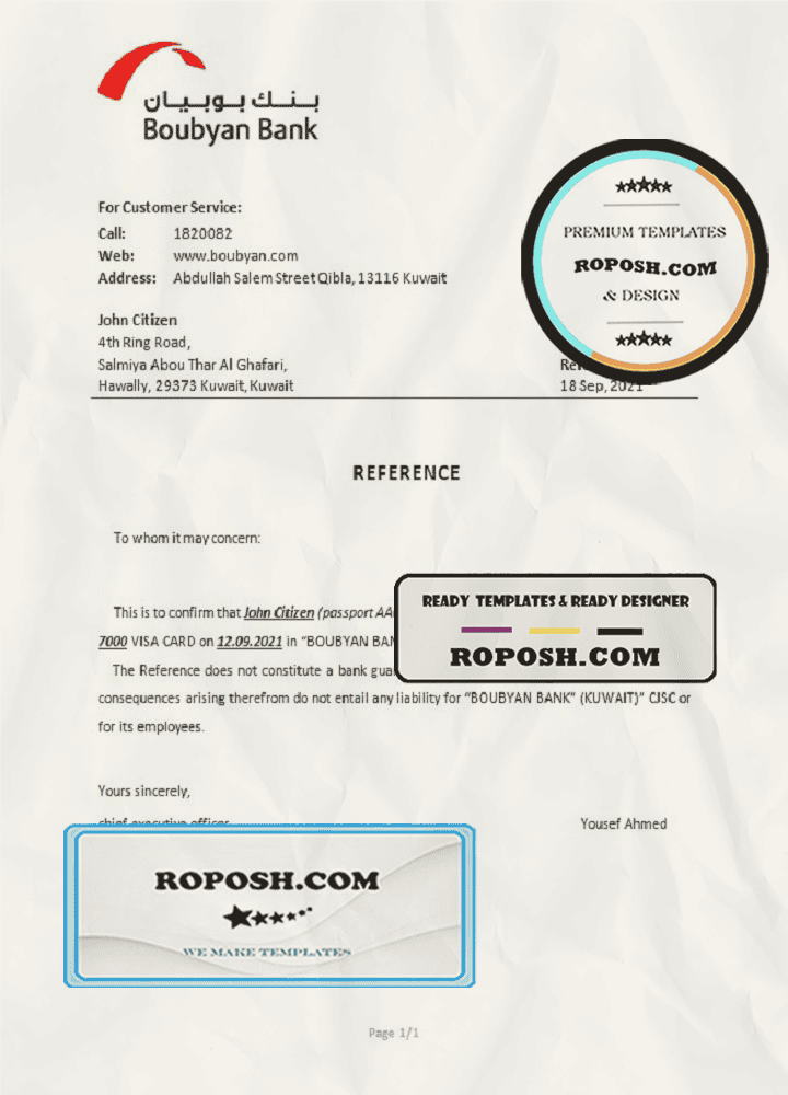 Kuwait Boubyan bank account closure reference letter template in Word and PDF format