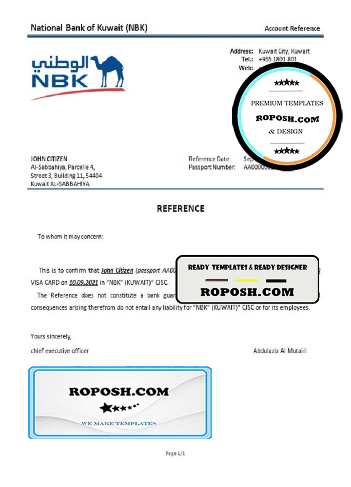 Kuwait National Bank of Kuwait bank account closure reference letter template in Word and PDF format