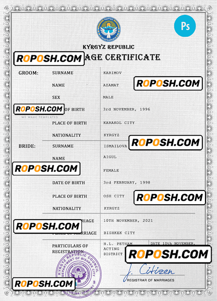 – Join our growing list of satisfied customers today by getting your hands on our blank Kyrgyzstan marriage paper certificates.