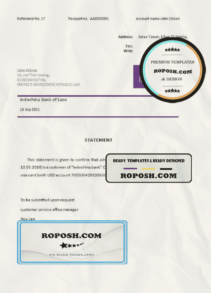 Laos Indochina Bank bank account closure reference letter template in Word and PDF format