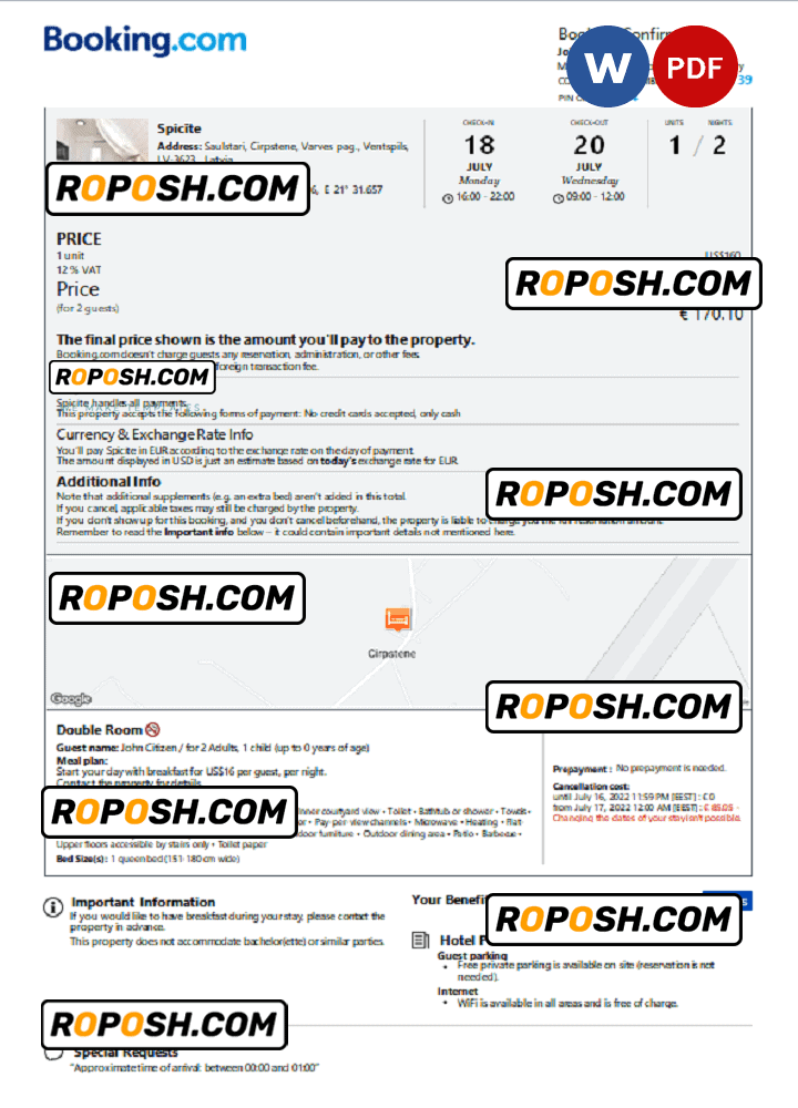 With its user-friendly design and flexible editing capabilities, this editable Latvia hotel booking confirmation hotel, room, house, and Airbnb reservation proof is the perfect choice for anyone looking to create a professional-quality editable hotel accommodation reception. So why wait?