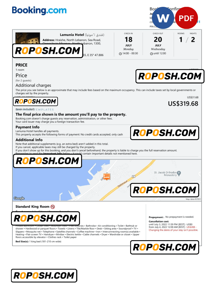 With its user-friendly design and flexible editing capabilities, this editable Lebanon hotel booking confirmation hotel, room, house, and Airbnb reservation proof is the perfect choice for anyone looking to create a professional-quality editable hotel accommodation reception. So why wait?