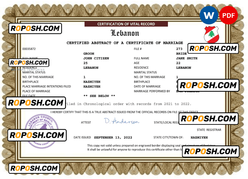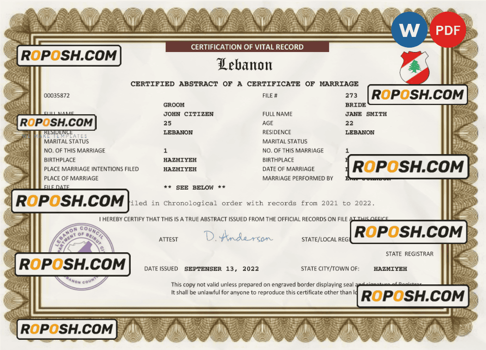 – Join our growing list of satisfied customers today by getting your hands on our blank Lebanon marriage paper certificates.
