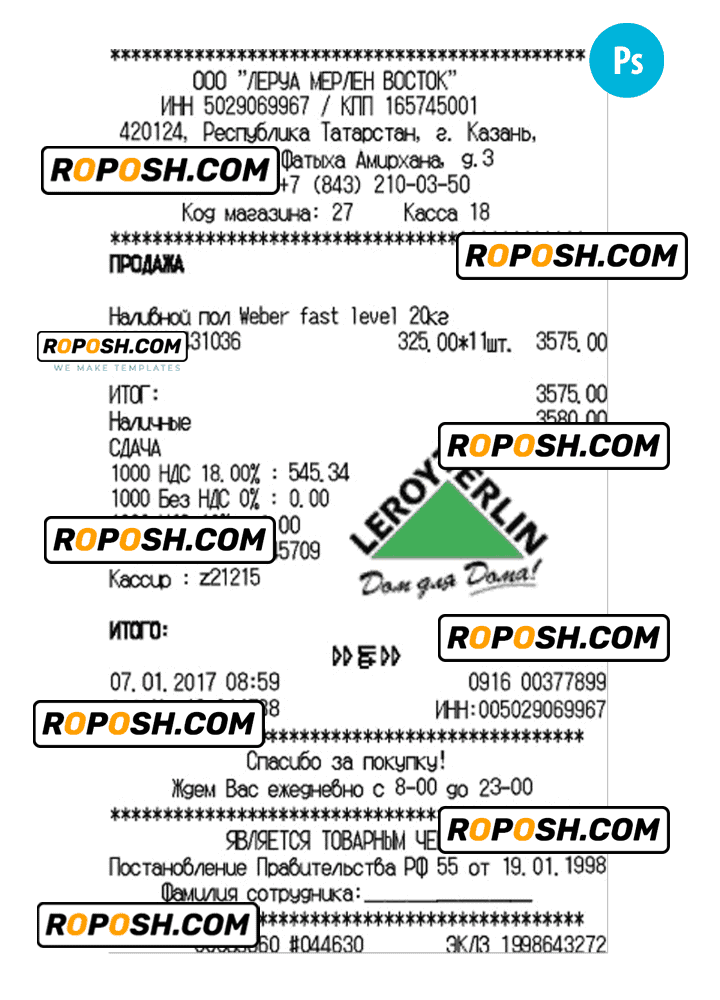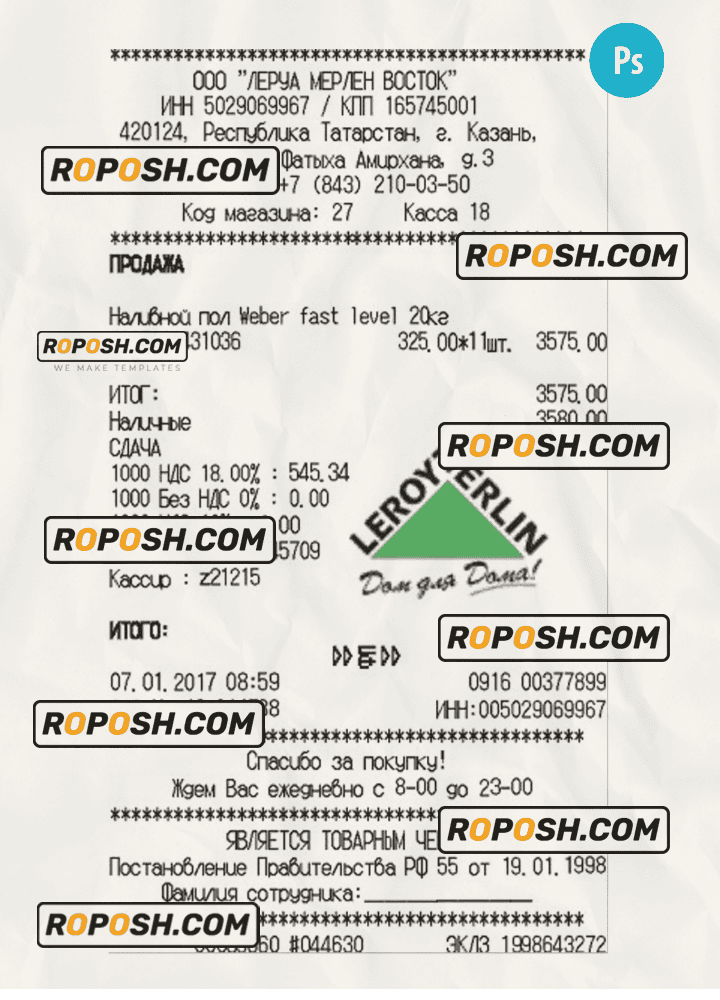 Features Editable LEROY MERLIN Receipt PSD Template :