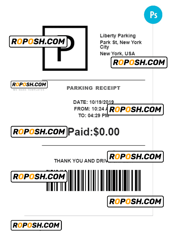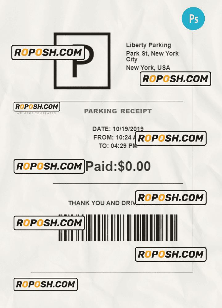 Features Editable LIBERTY PARKING Receipt PSD Template :