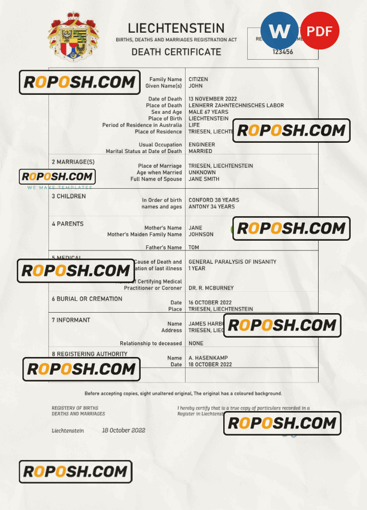 Be the first to review “Liechtenstein vital record death certificate Word and PDF template”