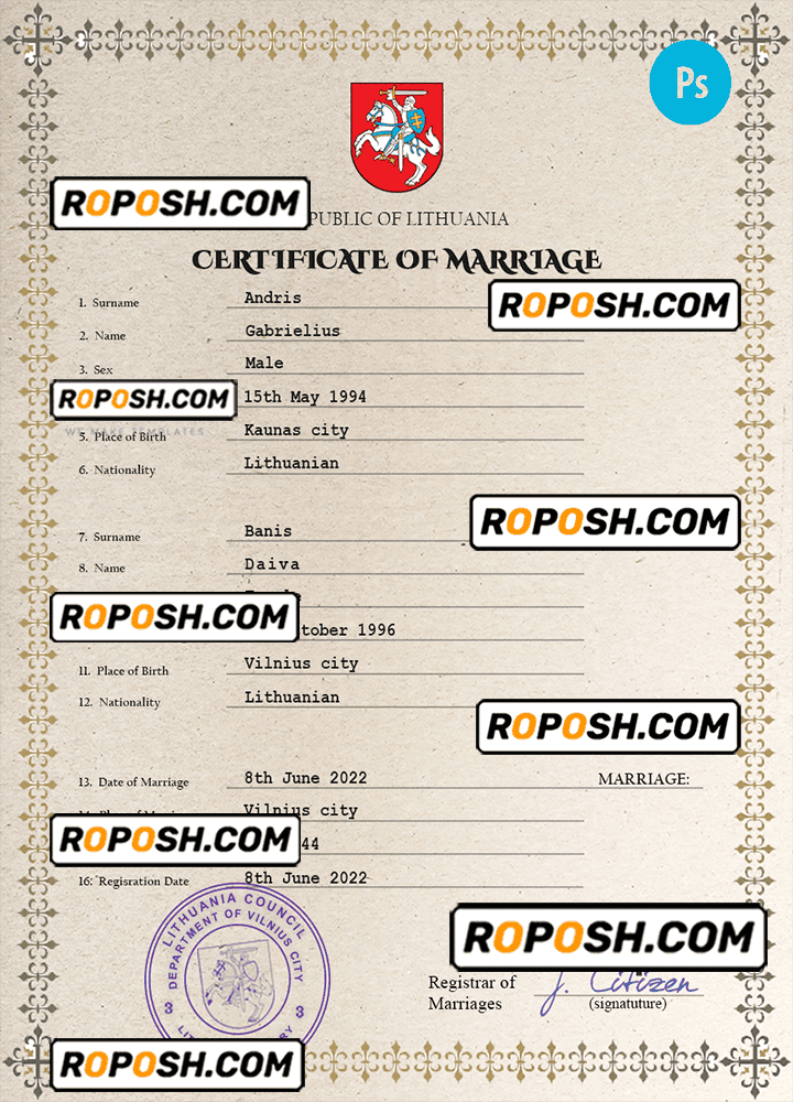 – Join our growing list of satisfied customers today by getting your hands on our blank Lithuania marriage paper certificates.